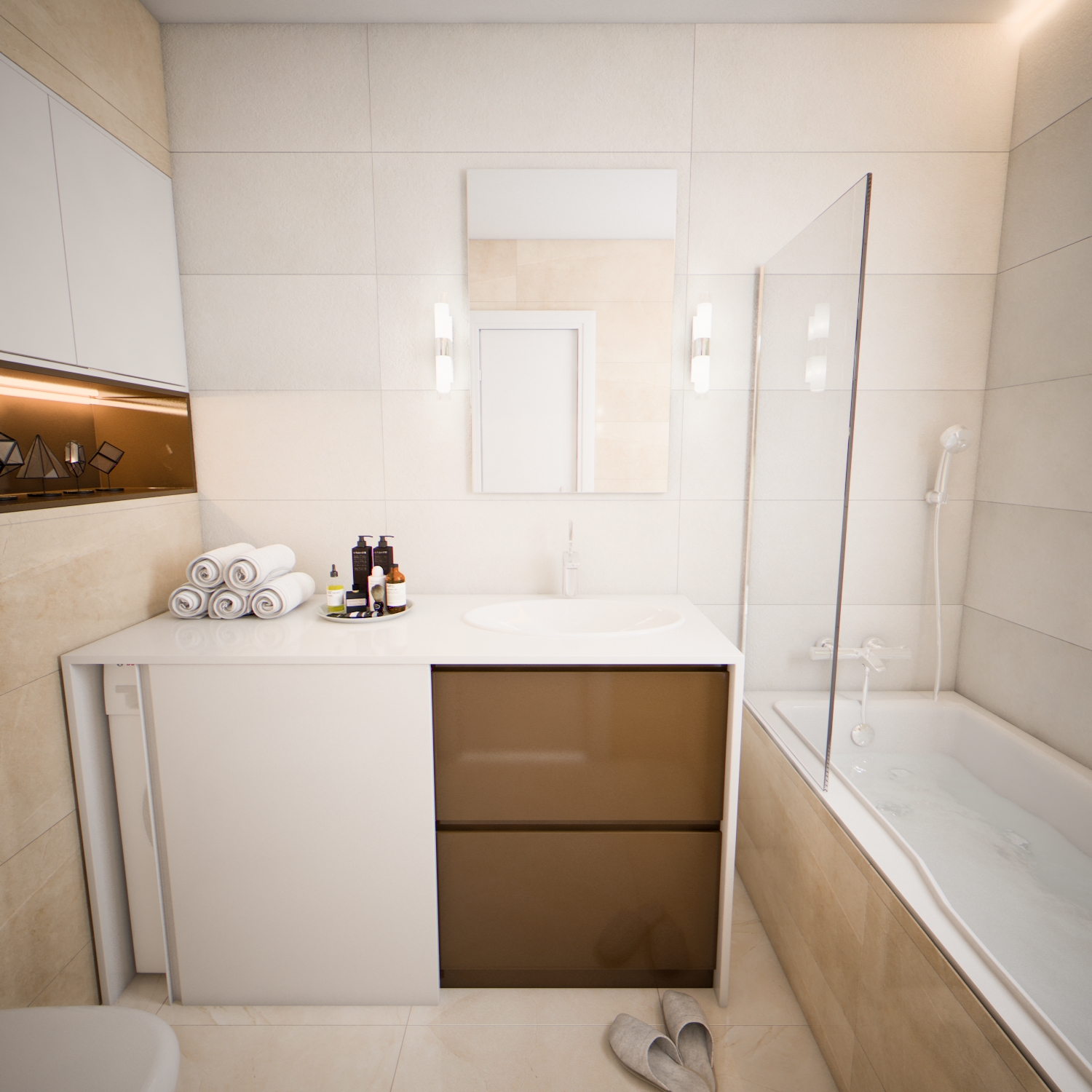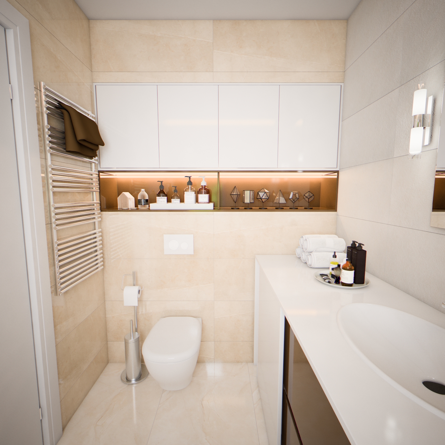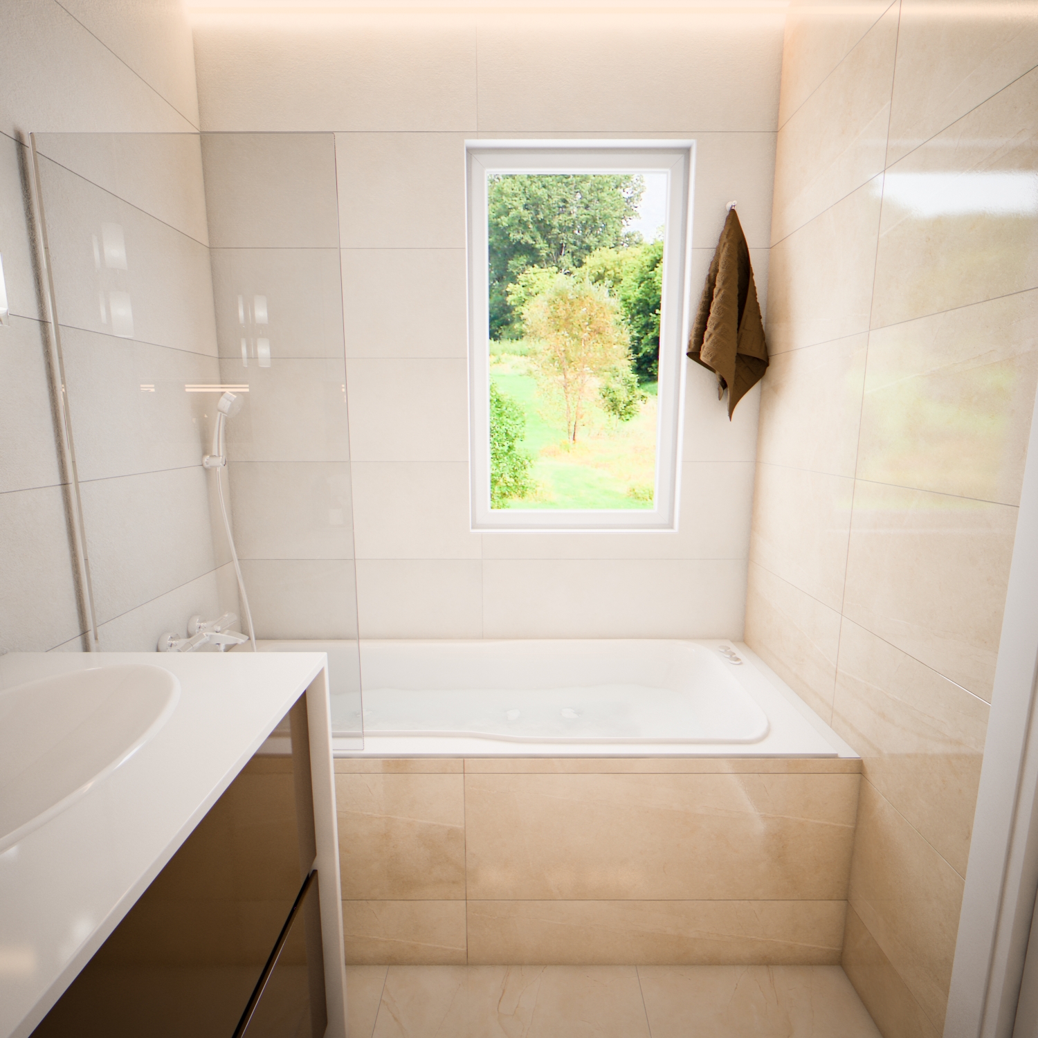 Pentru baie am ales o linie simpla de placi ceramice, proprietarii dorindu-si o abordare practica si minimalista.