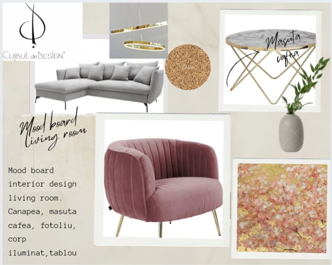 Am inceput acest proiect pornind de la elementele de mobilier, inainte de randari realizand mood board uri de prezentare.