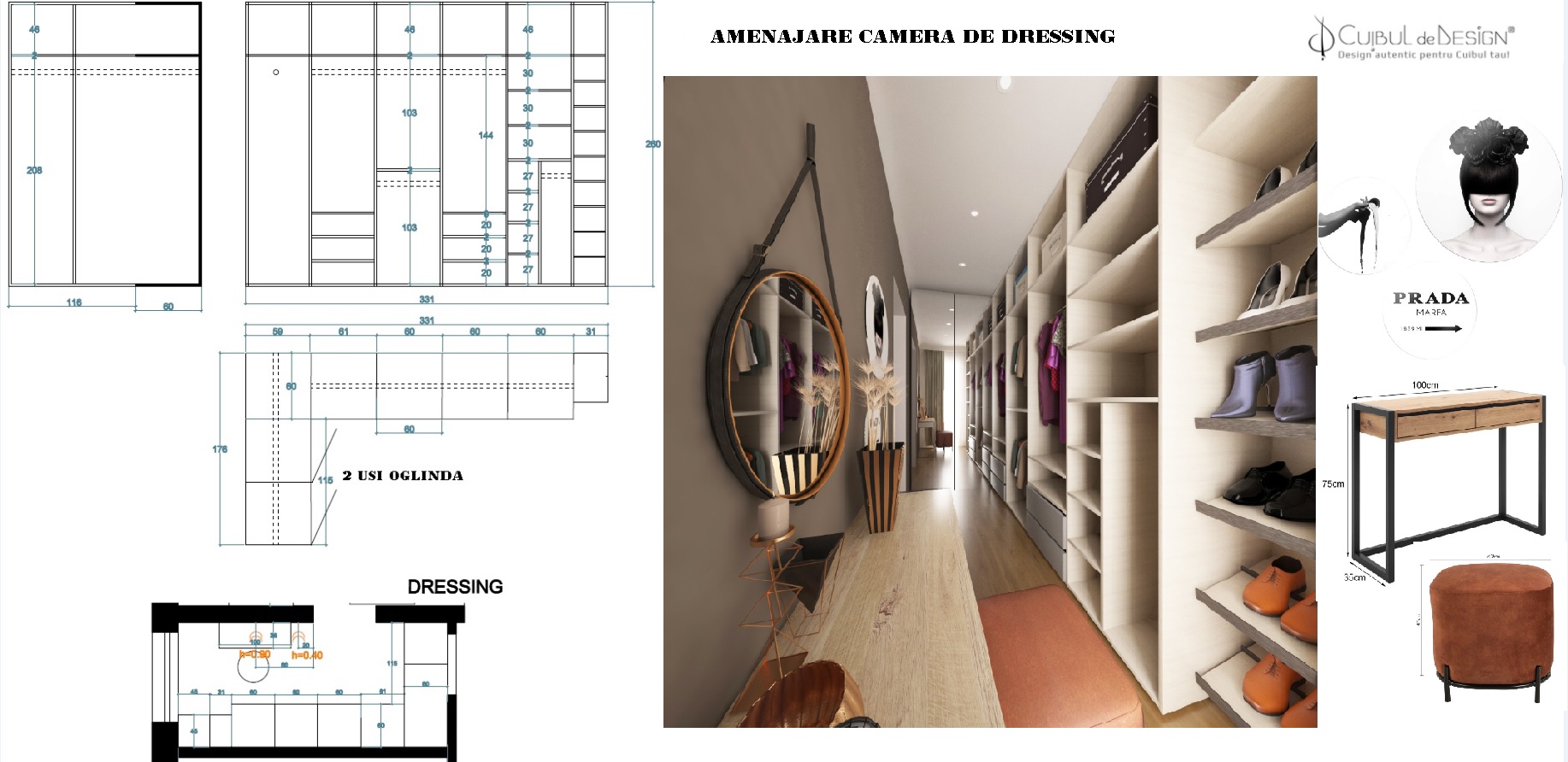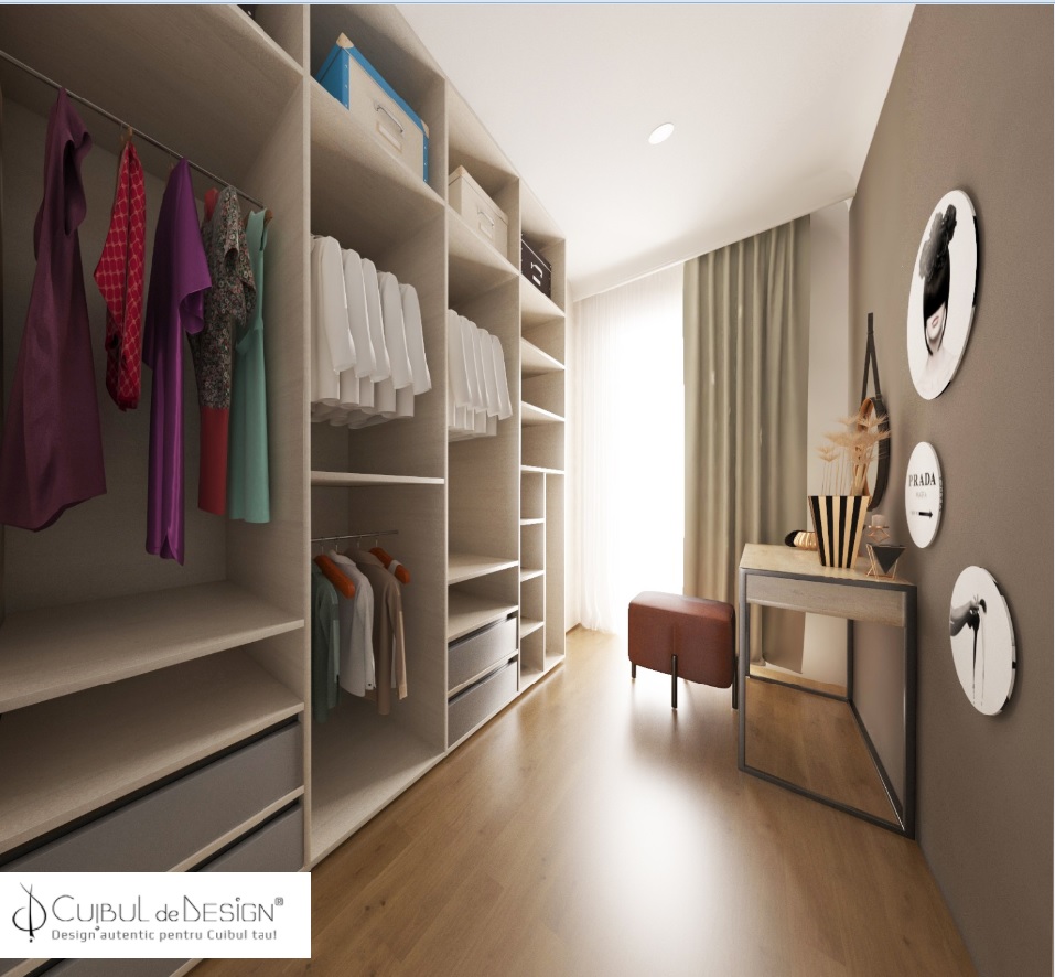 Desi am creat un dulap de depozitare in dormitor, acesta se bucura si de alaturarea unei camere de dressing. Aceasta permite gazdelor o mai buna organizare in ceea ce priveste depozitarea hainelor. O buna organizare duce la o viata mai sanatoasa, constienta si fericita. Organizandu-ne mai bine garderoba eliminam achizitiile de impuls si devenim mai echilibrati ca entitati. Sa fim sinceri, camera de dressing reprezinta visul orcarei femei!