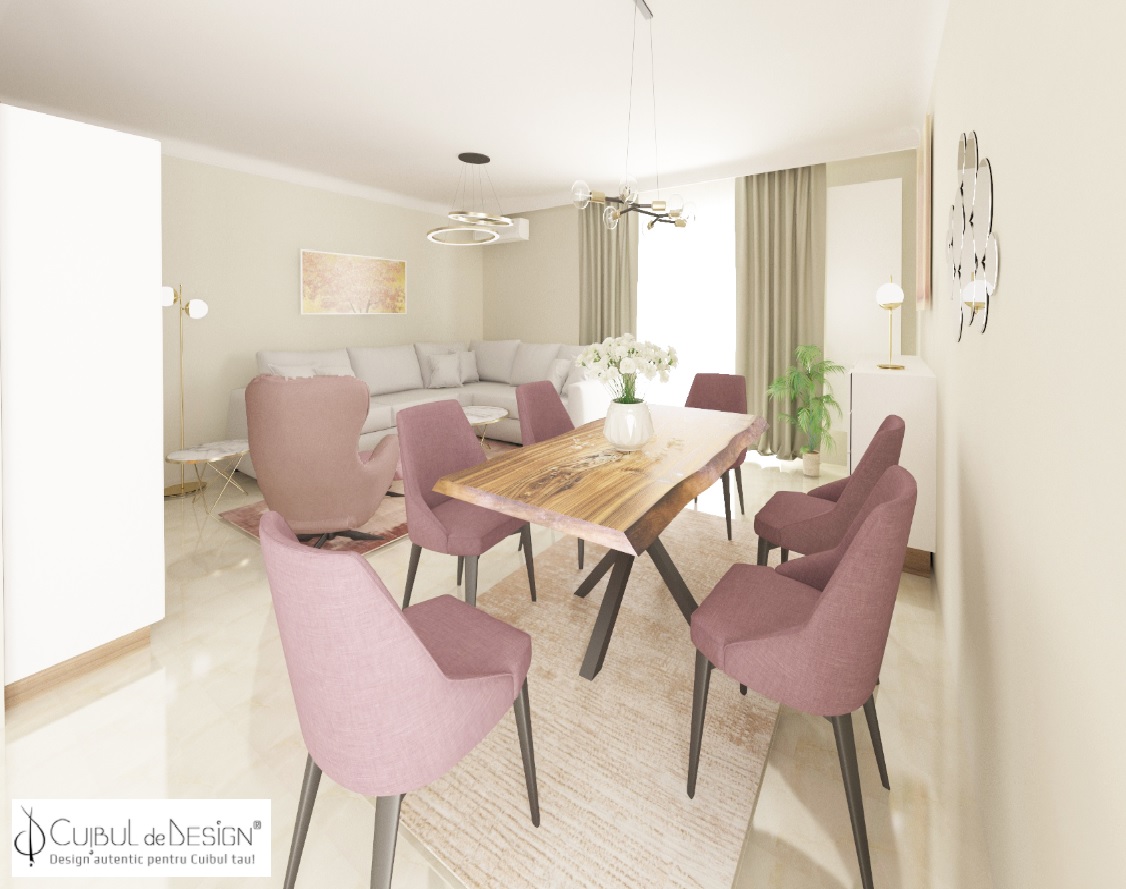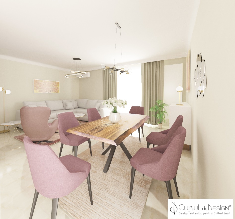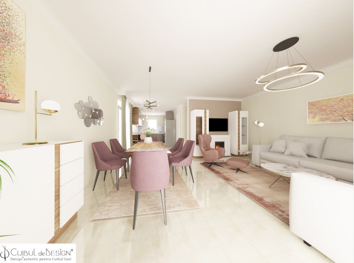 Comunicarea foarte buna cu proprietarii a facut posibila aceasta colaborare la distanta. Acestia si-au dorit o amenajare luminoasa, moderna si cu accente elegante.