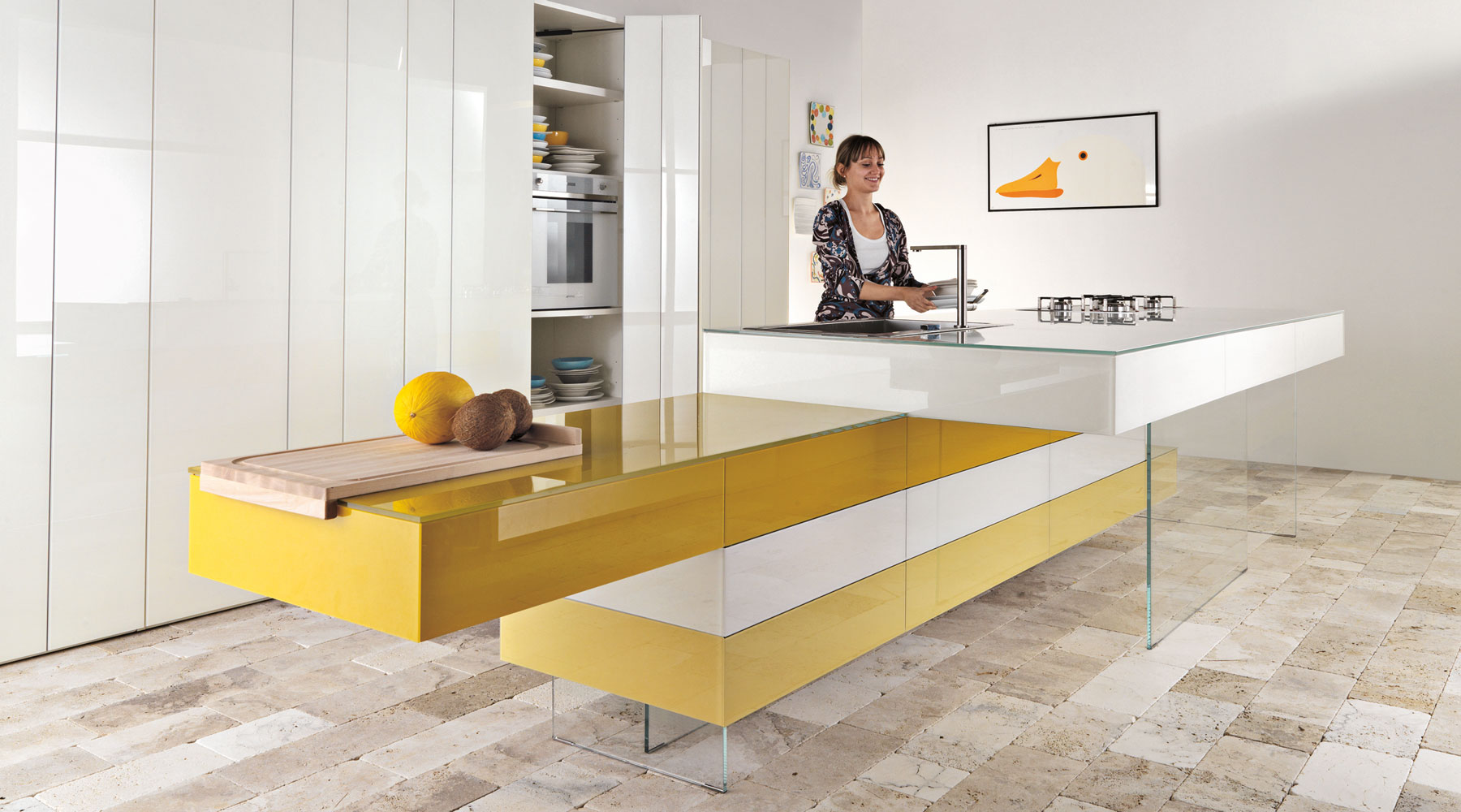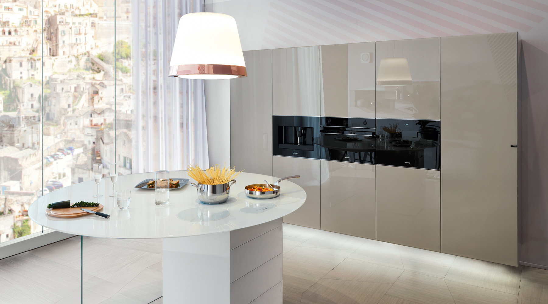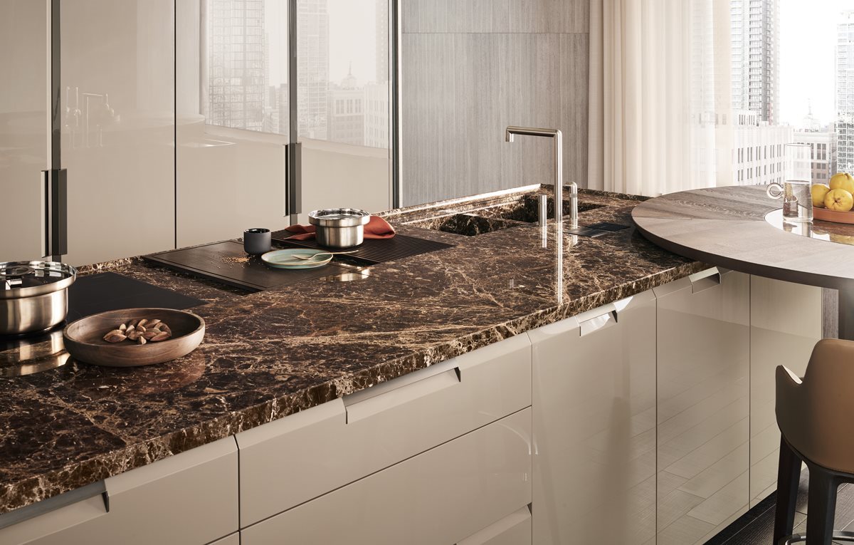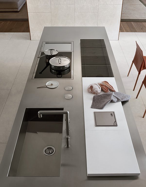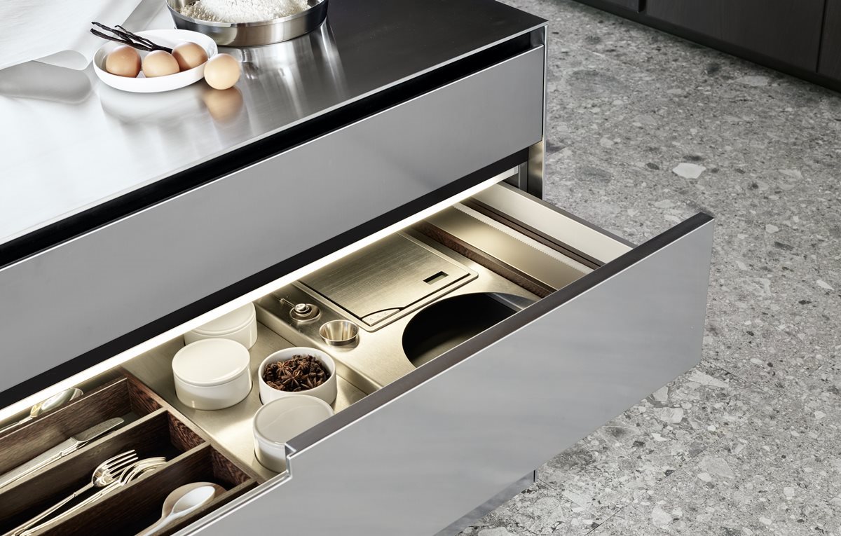 Un rol important il au si coloanele de depozitare. Acestea se pot integra cu usurinta in compozitia bucatariei si confera un spatiu mult mai generos depozitarii. Un ansamblu de coloane poate ascunde atat frigiderul incorporat, poate integra cuptoarele, sertarele termice si expresorul intr-o linie de design minimalista si practica.