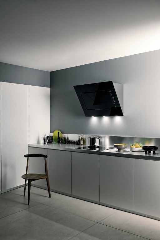 Intr-o bucatarie in care se gateste frecvent hota este foarte importanta. In cazul spatiilor mici si a amenajarilor minimaliste recomandam hota incorporata in corpul de mobilier de deasupra plitei. Astfel, nu pierdem din spatiul destinat depozitarii si pastram linia designului minimalist.