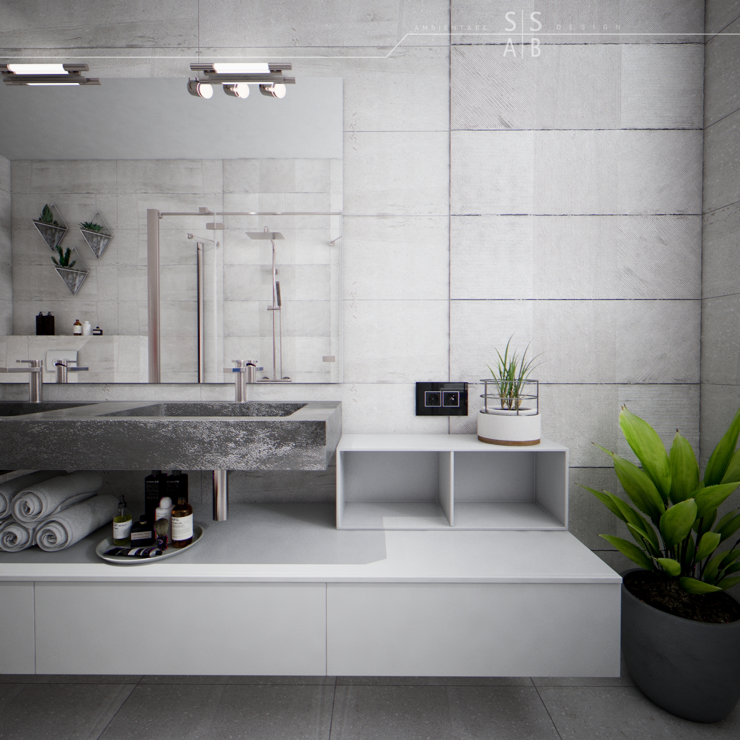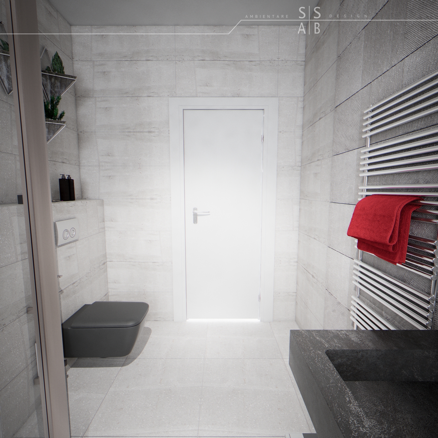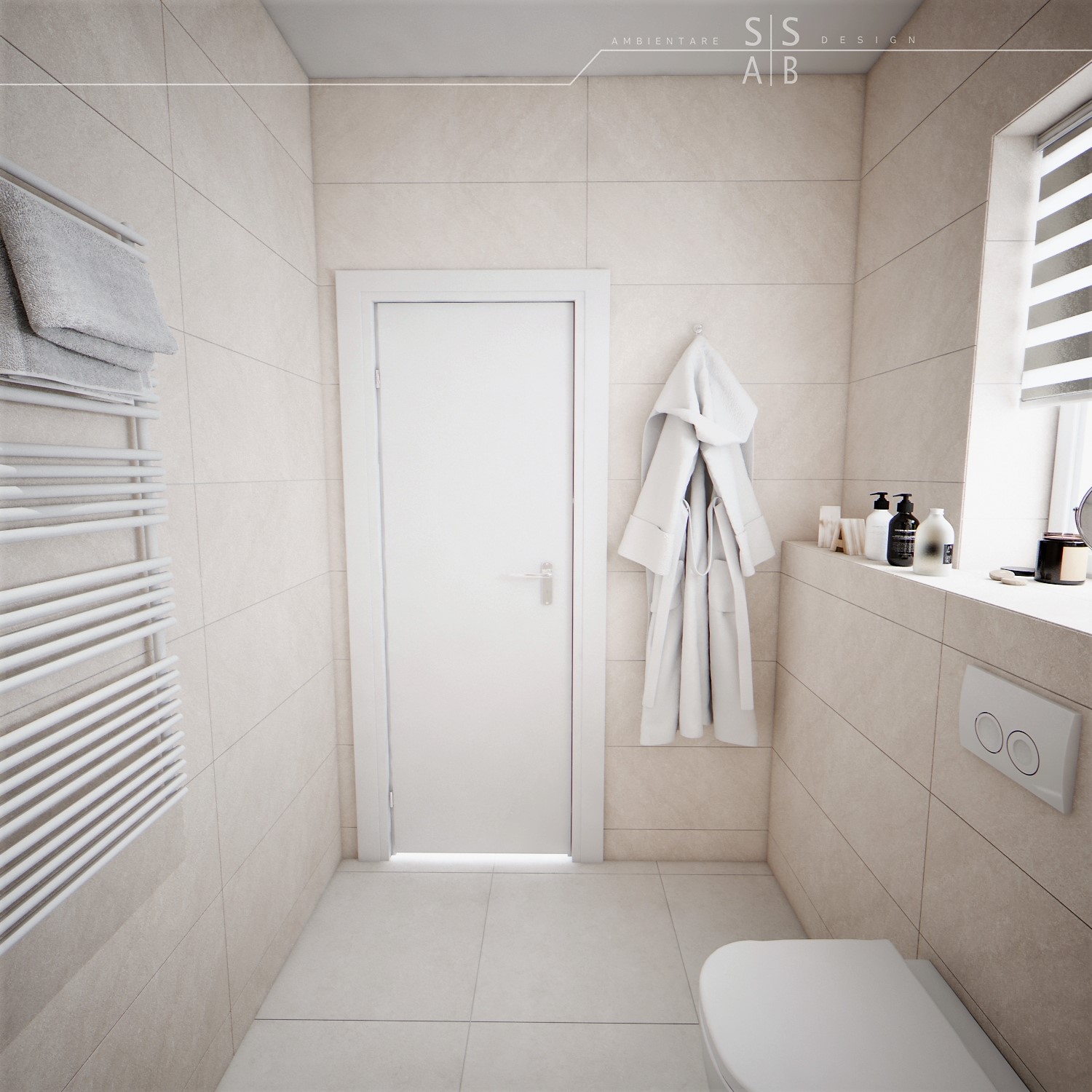 Placarile sunt simple astfel incat sa redea un efect unitar si „curat”, fiind completate de obiecte sanitare moderne precum si de mobilierul minimalist, de ultima generatie.