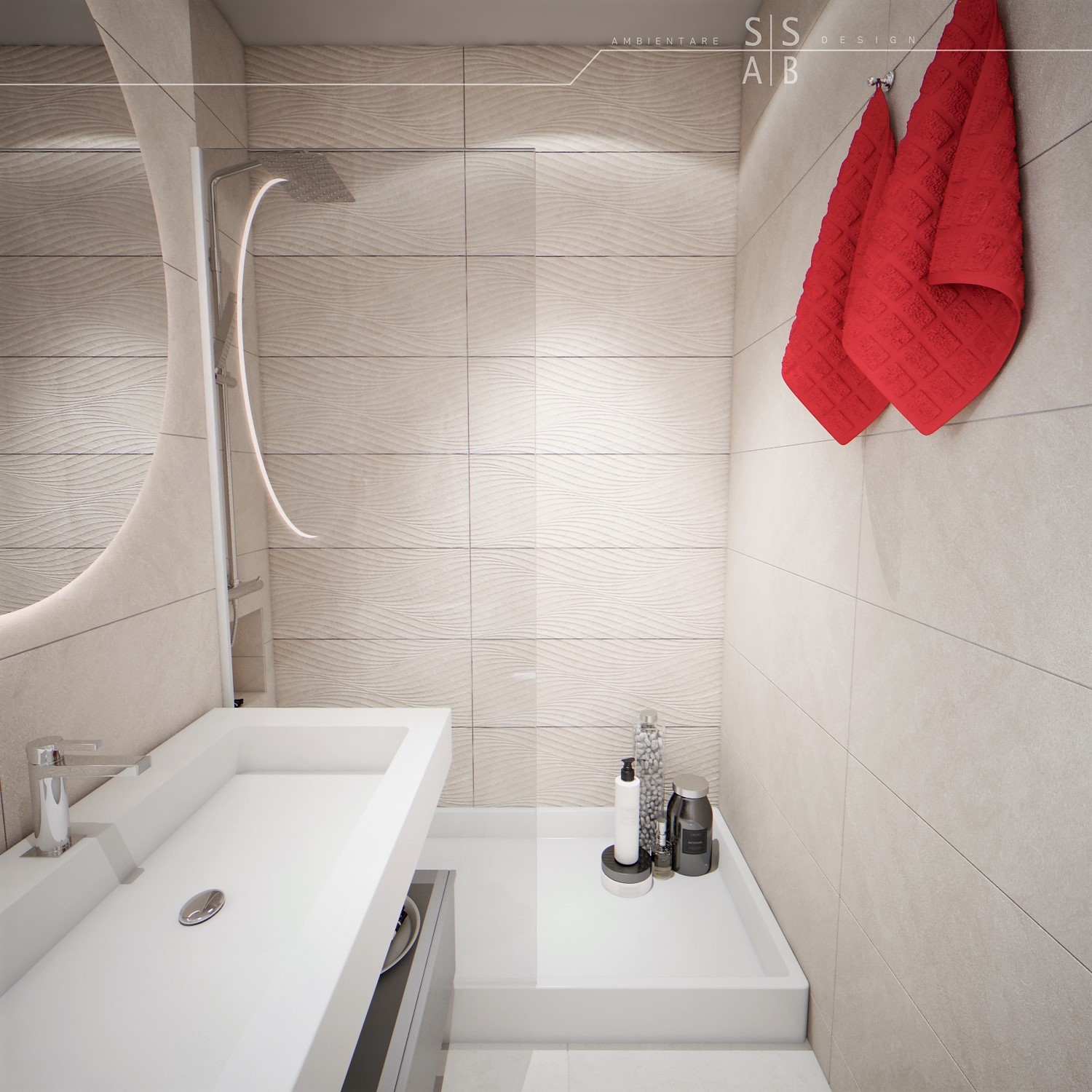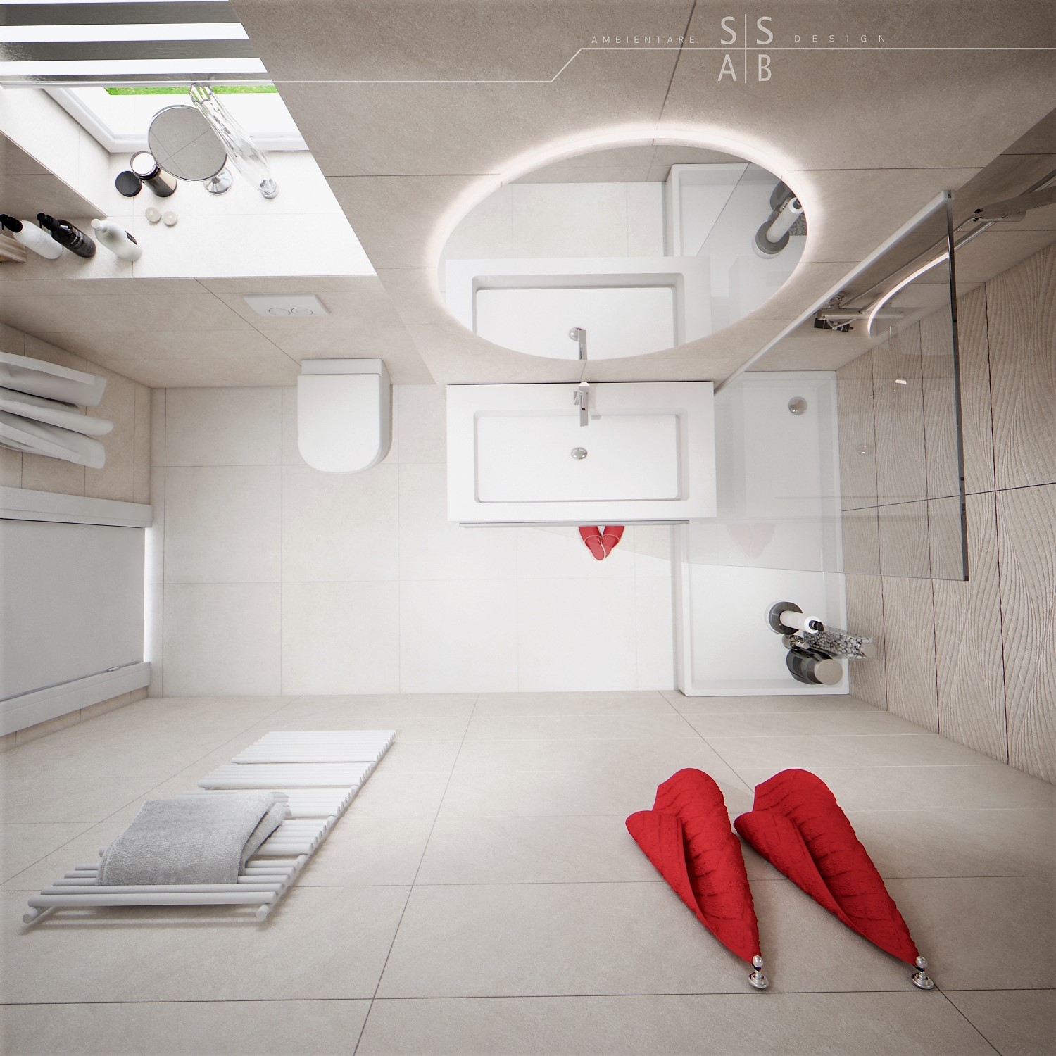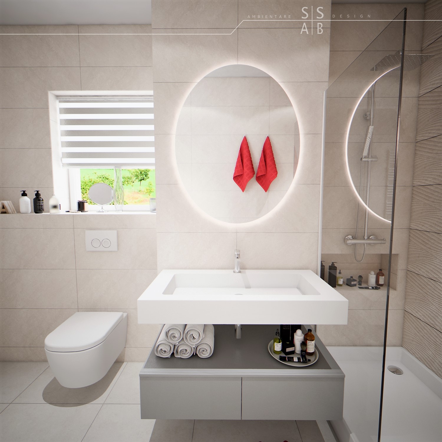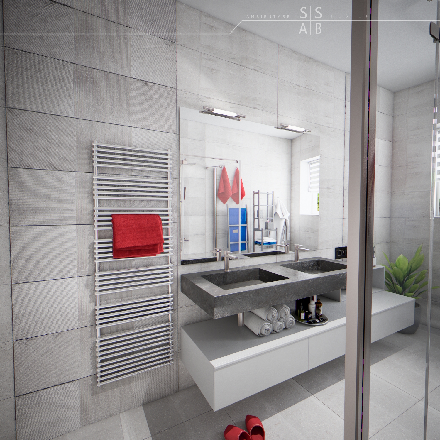 Placarile sunt simple astfel incat sa redea un efect unitar si „curat”, fiind completate de obiecte sanitare moderne precum si de mobilierul minimalist, de ultima generatie.