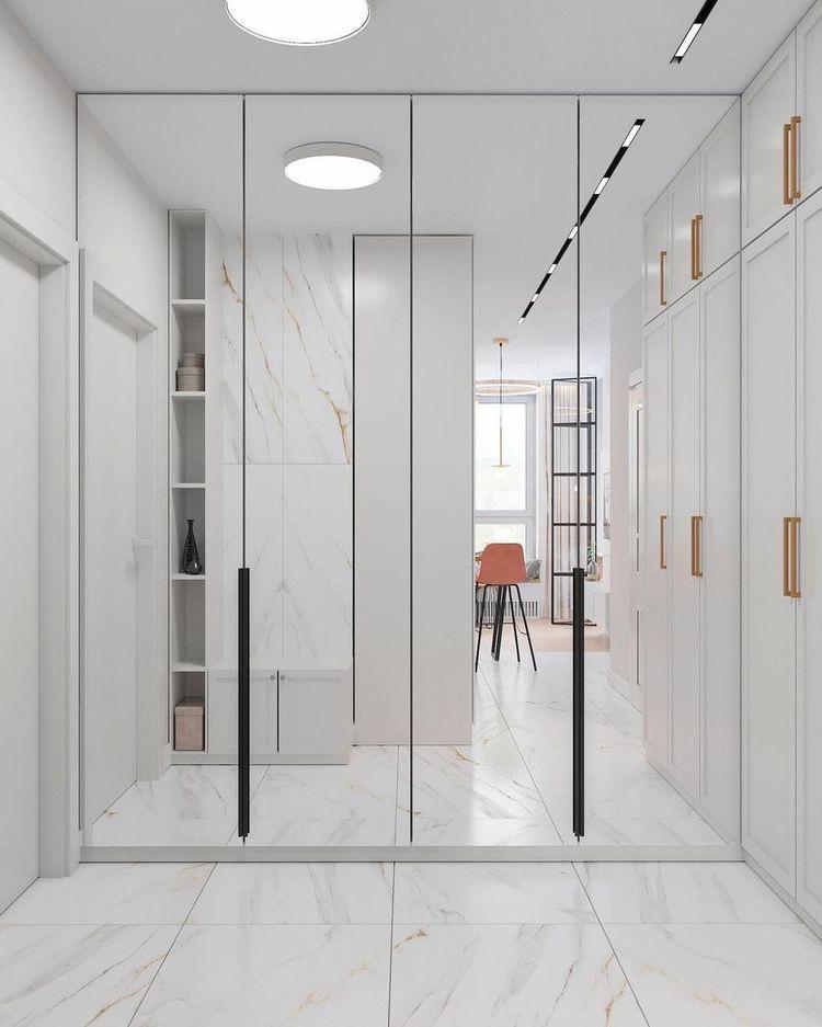 Spațiul holului poate fi transformat într-un minidressing. Astfel, camerele nu vor fi aglomerate cu mobilier necesar depozitării hainelor. Poți folosi un dulap înalt cu spații de depozitare a hainelor în partea superioară și a încălțărilor în partea de jos. Placarea ușilor cu oglindă poate conferi eleganță și spațialitate în cazul unui hol îngust. Dacă spațiul nu este tocmai generos, poți ține acolo piesele vestimentare de zi cu zi și le poți schimba în funcție de sezon.