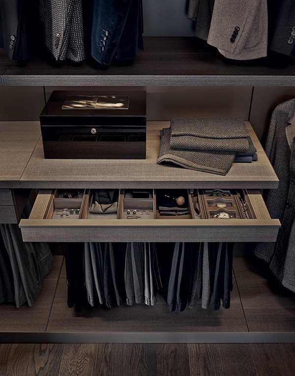 Sertarele destinate depozitării accesoriilor, bijuteriilor, ceasurilor și altor obiecte mici sunt menite să ne îmbogățească garderoba. Prin divizarea internă bine organizată a sertarelor, bijuteriile și accesoriile se pot vizualiza rapid, completând cu ușurință ținutele noastre zilnice. Acestea au devenit un must have al dressingurilor.