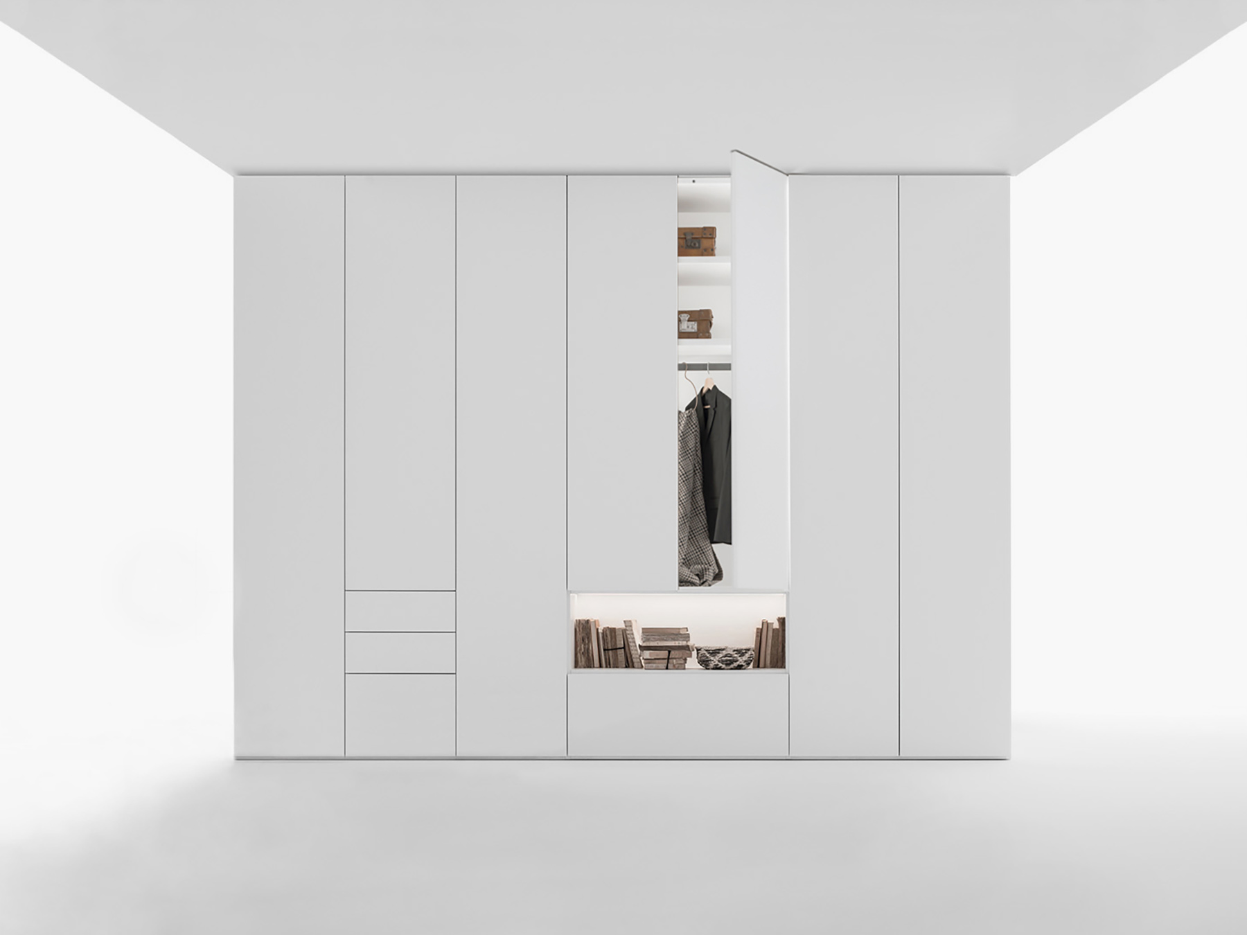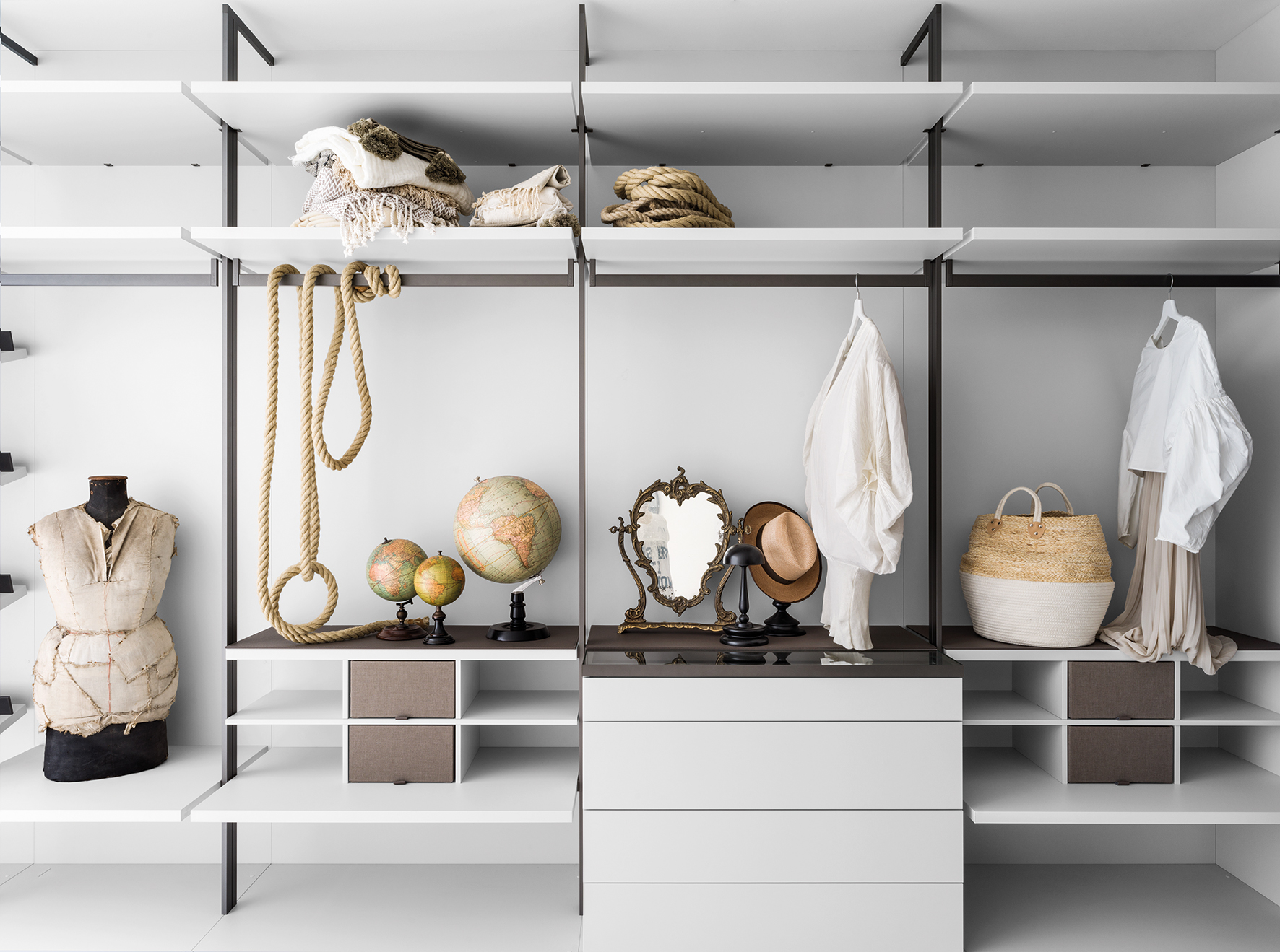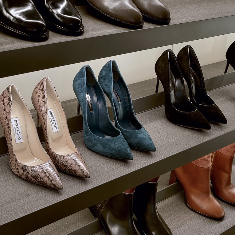 Pentru depozitarea lenjeriei intime în sertare se folosesc spații de 15-20 cm. Depozitarea pantofilor se face în spațiile libere de 20 cm dintre polițe, pentru cei clasici, și de 40 cm pentru cizme. Pentru hainele împăturite este necesară o distanță de 40 cm între polițe.