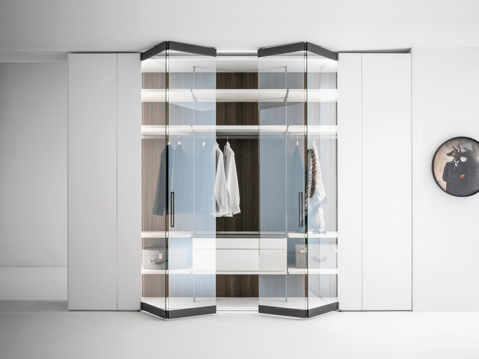 În mare vogă sunt dulapurile cu uși de sticlă transparentă. Acestea sunt destinate celor care fac din modă o pasiune, dar și persoanelor foarte organizate. Astfel, garderoba ta devine o vitrină elegantă, ca și cele ale marilor magazine.