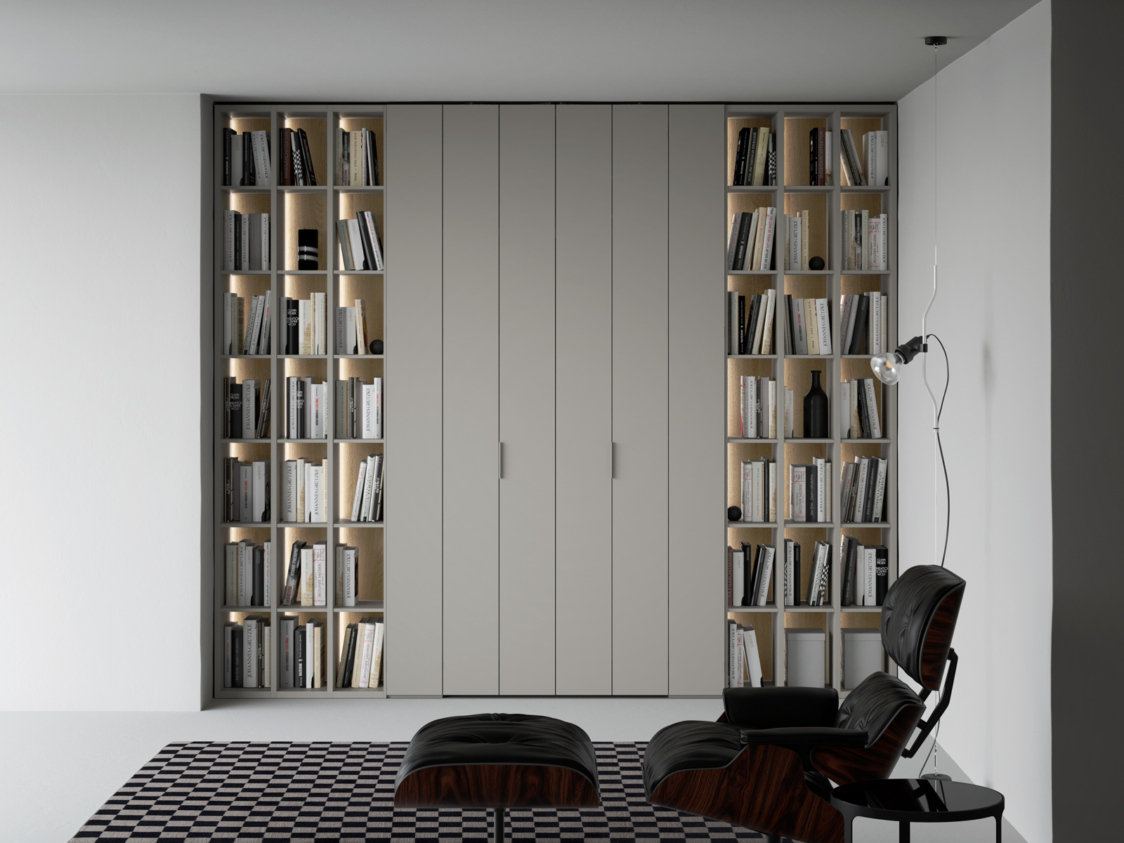 Putem obține spații de depozitare în living și în dormitor prin realizarea unor dulapuri încorporate complet cu uși cu mâner ascuns. Folosind un design discret, pereții nu vor părea încărcați, ci cu un decor cald, de tip boiserie.