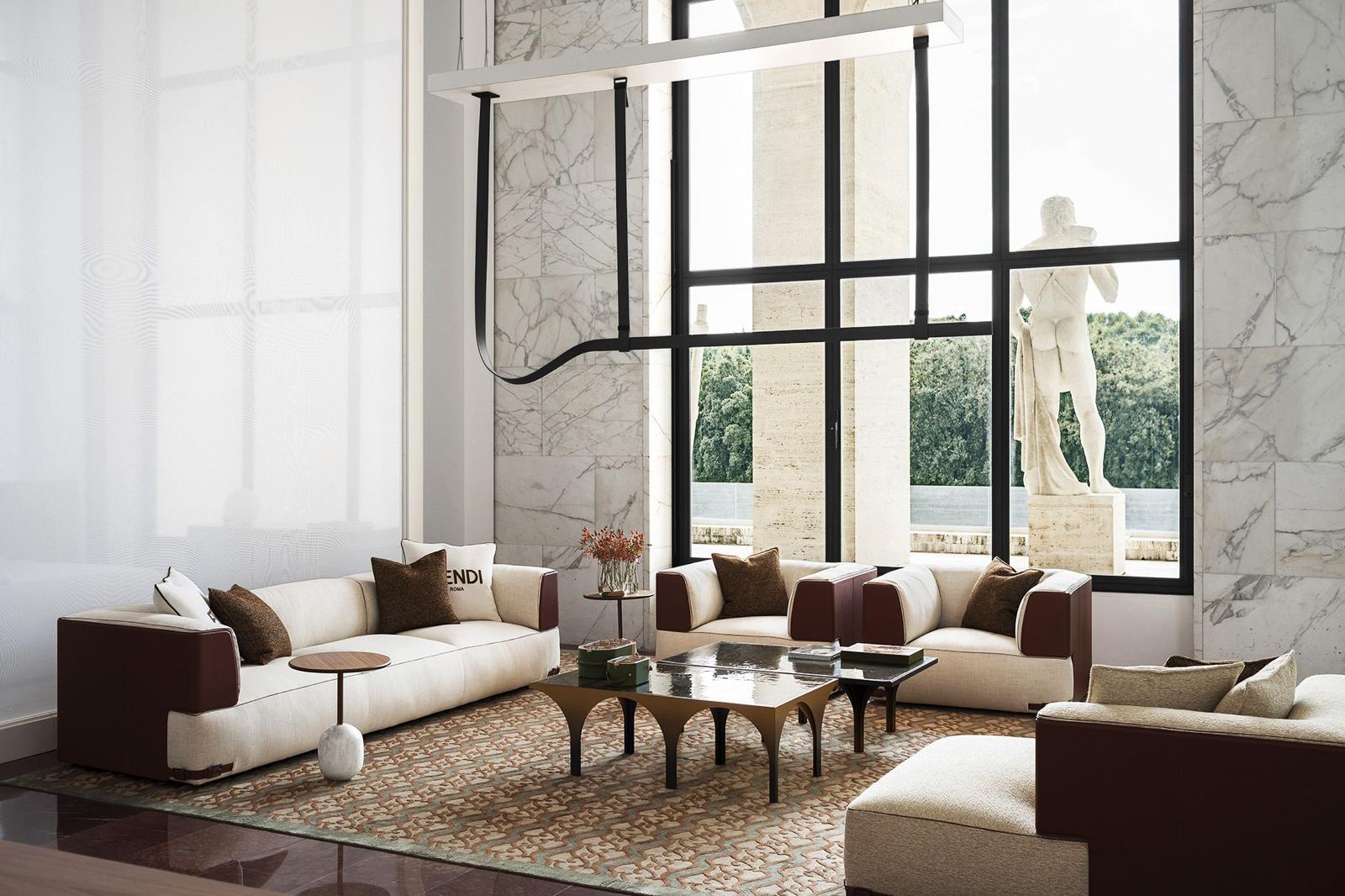 Fendi Casa transpune spiritul couture în piese de mobilier sofisticate. Casa Fendi aduce în universul designului de interior aceeași eleganță și atenție la detalii care definesc brandul de modă. Colecțiile combină luxul couture cu funcționalitatea, oferind canapele, fotolii, paturi și accesorii realizate din materiale premium. Un element definitoriu al stilului este utilizarea rafinată a pielii și a cusăturilor inspirate din haute couture, care dau pieselor o identitate puternică și recognoscibilă. Colaborarea cu designeri de renume a dus la creații ce exprimă rafinament și inovație, în timp ce sistemele moderne de funcționalitate completează experiența unui confort cosmopolit.