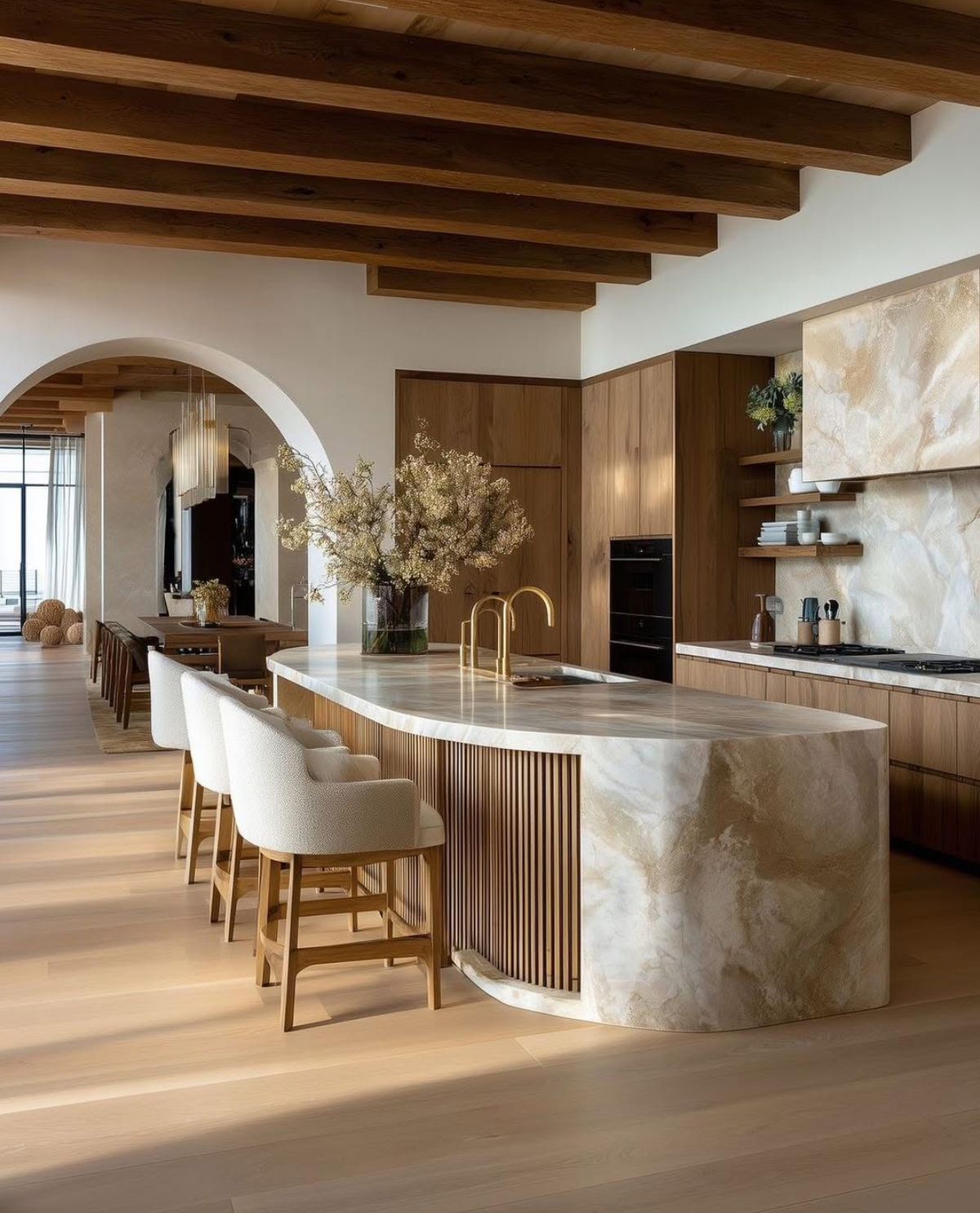 Liniile fluide nu sunt doar o preferință estetică: ele induc confort vizual, creează continuitate și relaxează dinamica încăperilor. Tot mai des întâlnim și arcade, treceri arcuite sau piese de mobilier cu margini elegante, organice, elemente ce aduc un plus de rafinament spațiului contemporan.